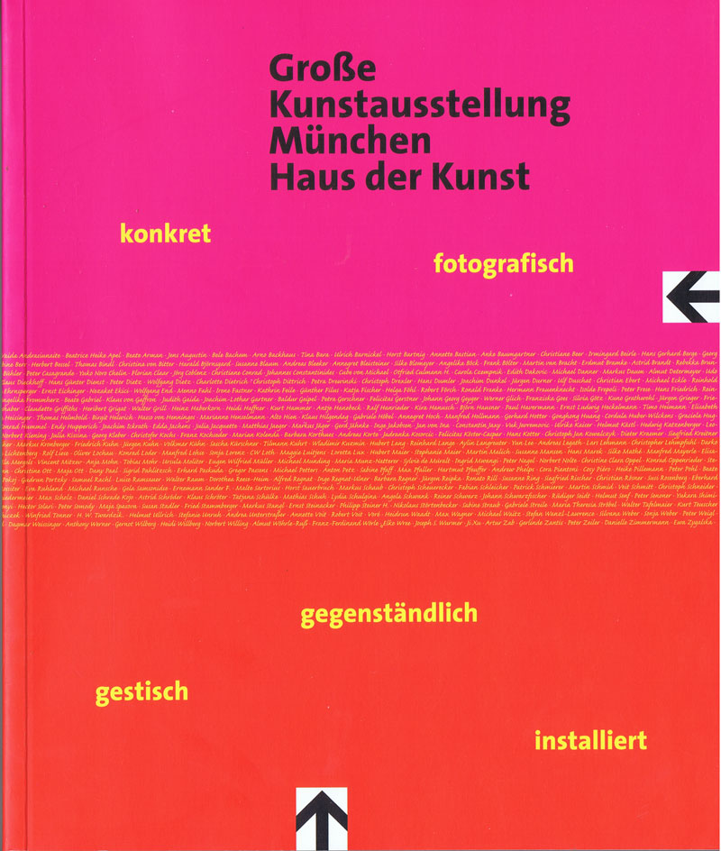 erscheint zur Großen Kunstausstellung im Haus der Kunst München, 16.11.2000-28.01.2001, erstmalig nach Auszug der Bayerischen Staatsgemäldesammlung im Westflügel Haus der Kunst. Veranstalter: Ausstellungsleitung Große Kunstausstellung im Haus der Kunst München e.V., Präsident: Manfred Mayerle, Konzept und Jury: Gäste und Mitglieder der drei Künstlergruppen Neue Gruppe Münchener Secession, Neue Münchner Künstlergenossenschaft.