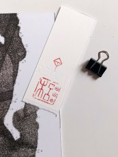 Drahtheftung. Eingelegt ein Büttenpapier, 2-fach gestempelt mit chinesischen Namensstempeln, Rückseite handschriftlich beschrieben mit dem Satz: „i pray everyday for evolution“, am Heft befestigt mit schwarzem Folding Clip