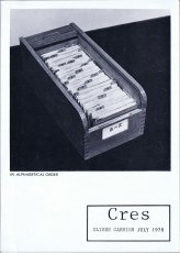 Cres erscheint zweimonatlich. Schwarz-Weiß Fotografie eines Karteikastens a-z, bei dem die Karteikarten nach verschiedenen Kriterien hochgestellt sind, z. B., Leute, die ich getroffen habe - Künstler - keine Künstler - meine besten Freunde, Leute, die ich liebe - Leute, die ich bewundere - denen ich misstraue, usw.