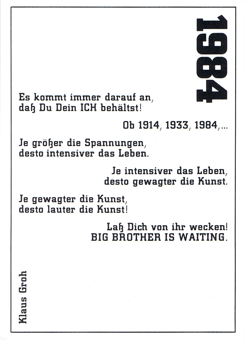 • Postkarte "1884 - Grüße zum Untergang", Dada-Text "Dankeschön", handschriftlicher Gruß an Kattenstroth, Siegen, 21.09.1984, signiert, Künstlerstempel