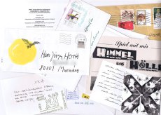 signiert, 7 Teile. keine weiteren Angaben vorhanden Konvolut aus sieben Briefen und Postkarten, beschrieben, bemalt, beklebt und gestempelt,