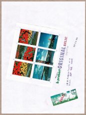Materialien in transparenter Kunststoffhülle. Klappkarte, Vorlage bearbeitet durch Tontrennung, Teil-Pseudosolarisation, Farb-Xerox, gestempelt von Jürgen O. Olbrich