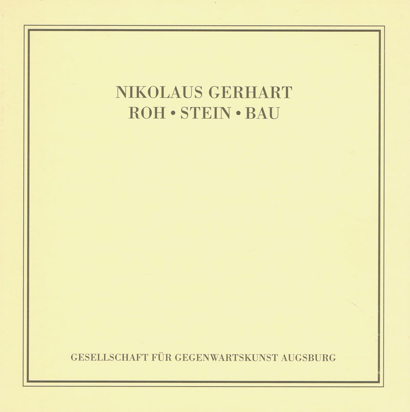 Katalog zur Ausstellung "Roh Stein Bau" des Künstlers Nikolaus Gerhart, die vom 26.10.-21.12.1996 im Rohbau des Diözesanmuseum St. Afra in Augsburg stattfand.