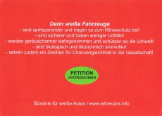 Mit eigener Webseite und als Aufruf, um die Petition unterzeichnet zu sehen, ist diese Aktion auf https://www.openpetition.de/petition/argumente/alle-autos-Weiß nachzulesen, u. a. mit folgenden Informationen: