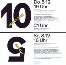 Blätter lose ineinander gelegt, rückseitig roter und blauer Stempel, erschienen anlässlich des 10jährigen Bestehens des Verlages
