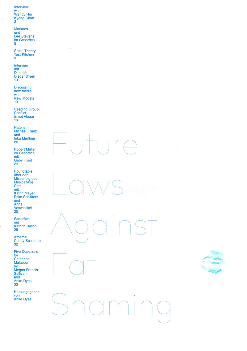 Future Laws Against Fat Shaming revolves around the question of what happens to the body on the Internet, in a public sphere where encounters increasingly take place digitally, online.