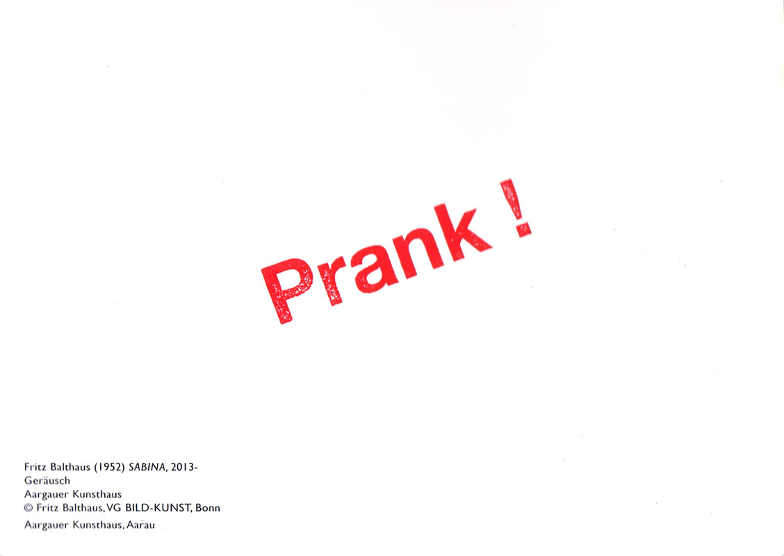 Das geschieht ohne Herstellungs- und Materialoperationen im Atelier des Künstlers, ohne Kunsttransport und 'art-handling' im Museum - sogar ohne die Einladung der Museumsleitung. Das ist geräuschlose Geräuschproduktion im schalltoten Raum der Interpretation. Akustisch dasselbe Geräusch geblieben, ist Sabina nicht mehr Nebengeräusch, sondern hat einen atemberaubenden Auftritt im wirkungsgewissen Resonanzraum kontextueller Reflexion.
