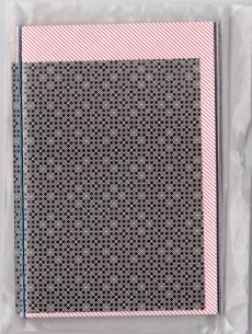 mit Gummiband zusammengehaltene Einzelblätter, Risographie, in Melaninumschlag